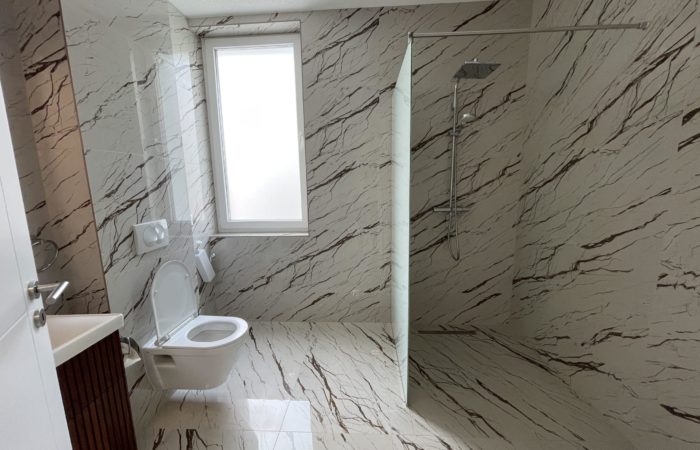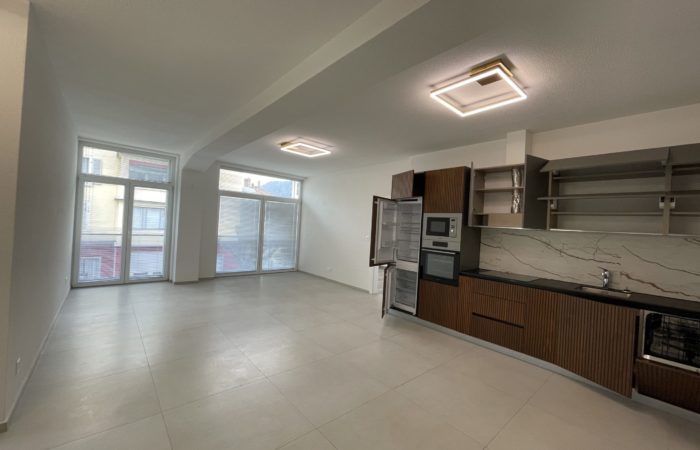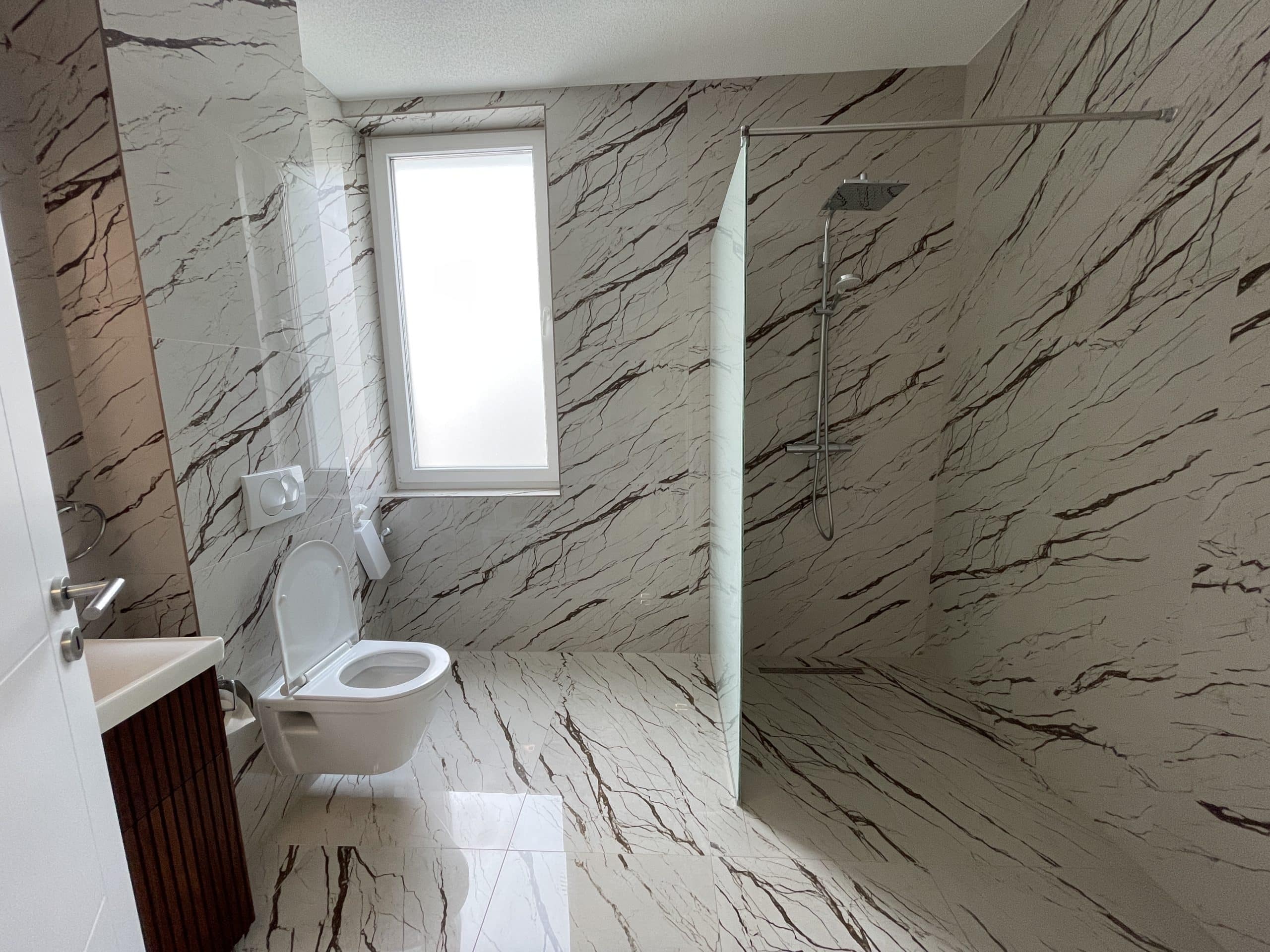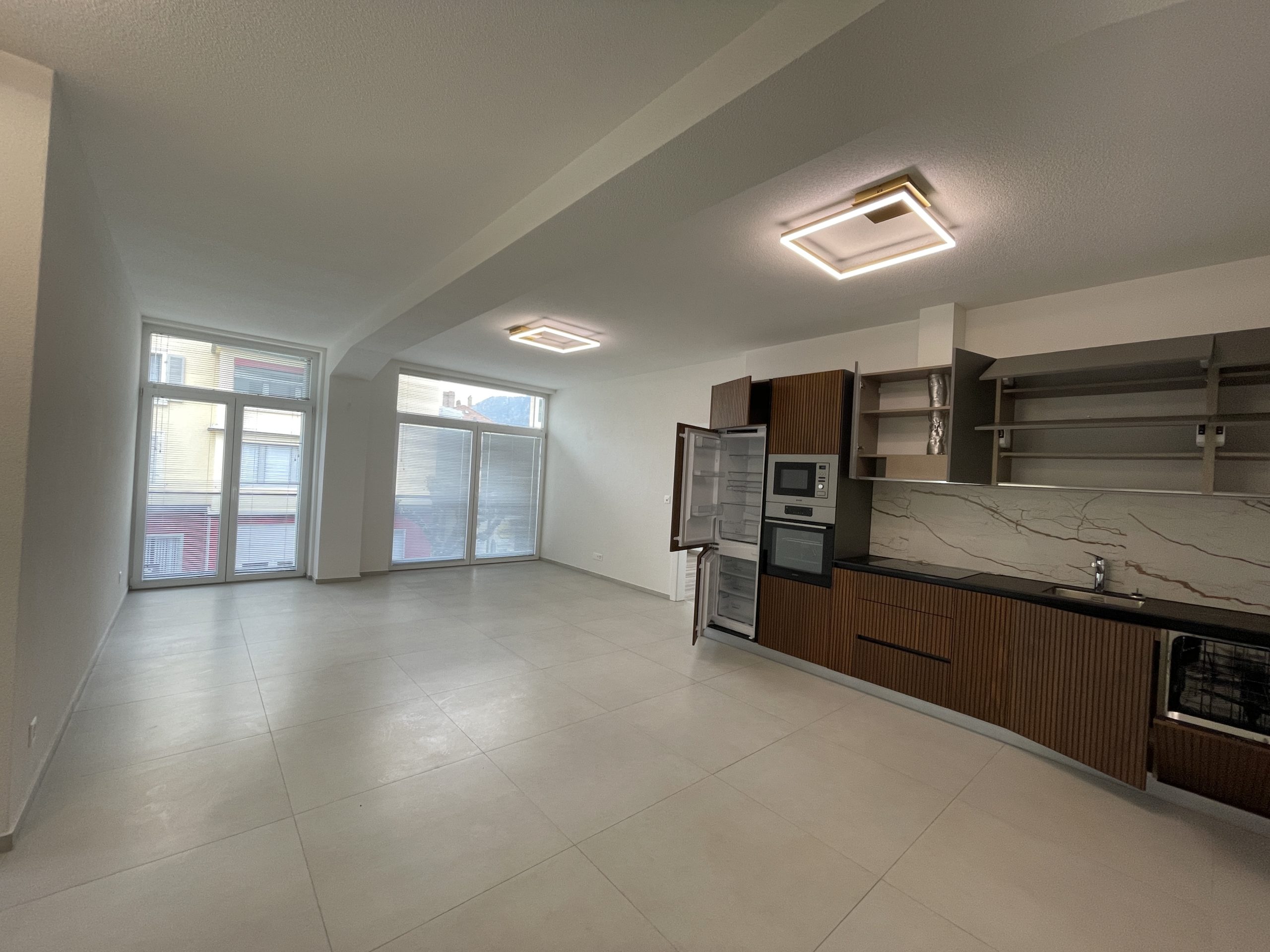 Joli appartement rénové avec 2,5 pièces, comprenant une chambre. une cuisine intégrée, une salle de bain avec une douche et WC.
