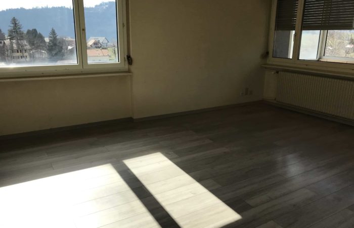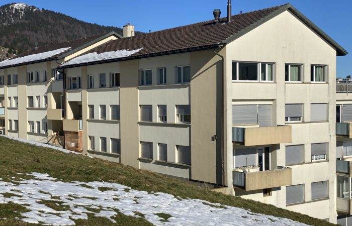 Appartement de 3 pièces comprenant 2 chambres, 1 cuisine agencée, 1 salle de bain avec WC et un balcon.