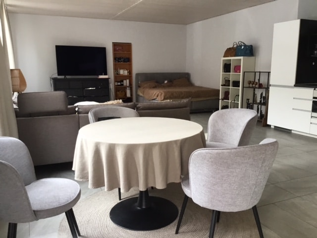 Beau loft très lumineux au RDC comprenant une cuisine fonctionnelle et entièrement agencée, une salle de douche avec WC, un espace réduit-buanderie avec machine à laver et à sécher. Possibilité de louer une place de parc pour fr. 70.- de plus par mois.