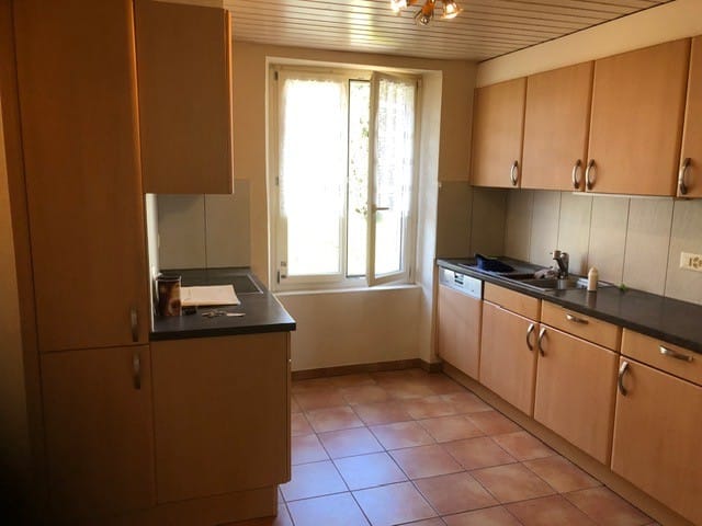 Généreux appartement de 4.5 pièces en duplex, grand salon avec cheminée de salon et insert, cuisine équipée récente, 3 grandes chambres, un coin bureau, un balcon, 1 salle d’eau avec baignoire et sèche serviette et un wc séparé. (env. 120m2)