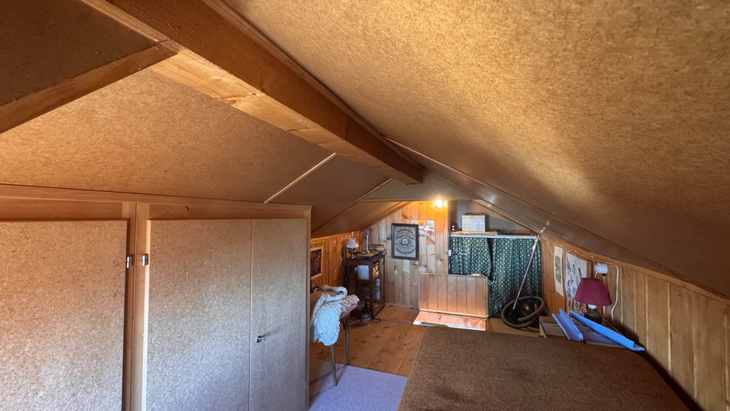 Par l’échelle de meunier, on accède sous la toiture, correctement isolée et installée où l’on découvre « une petite garçonnière ».